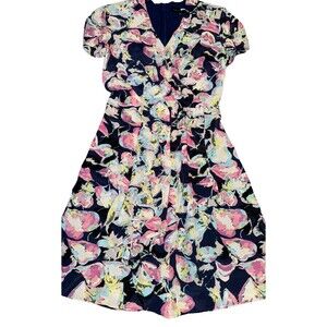 Slate & Willow Mixed Floral Printed Mini Dress Sz 0 100% Silk