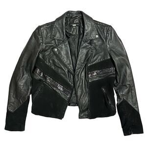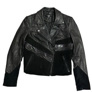 Slate & Willow Mixed Media Colorblock Moto Leather Jacket, size S