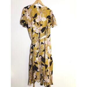 Slate & Willow Mod Daisy Wrap Dress Short Sleeve Midi Floral Yellow Size 0X