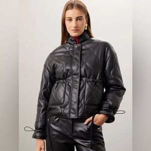Slate & Willow Quilted Faux Leather Black Jacket Size Small