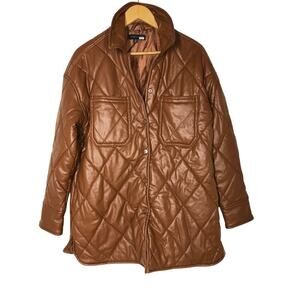 Slate & Willow Quilted Jacket Faux Leather Shacket Brown M