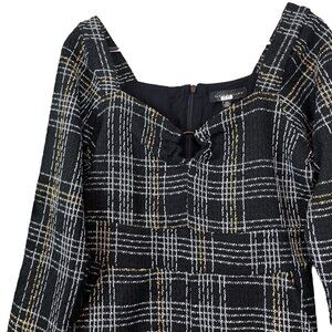 Slate & Willow RTR Plaid Tweed Keyhole Neck Romper Black Gold Silver Size XS