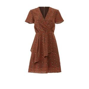 Slate + Willow Rust Brown Leopard Animal Print Silk Faux Wrap Mini Dress Size 6