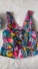 Purple floral cotton blend (97% Cotton, 3% Spandex). Top. Sleeveless. V-neck. Side zipper closure.