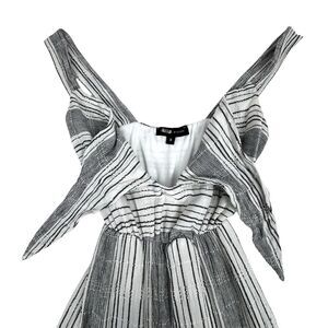 Slate & Willow Tiered Midi Dress Small Black & White Stripe Tie Front Boho