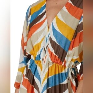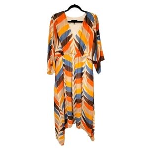 Slate & Willow V-Neck Scarf Hem Dress Women's XL Retro Feather #10121 Asymmetric