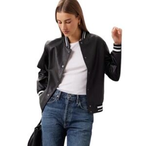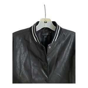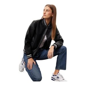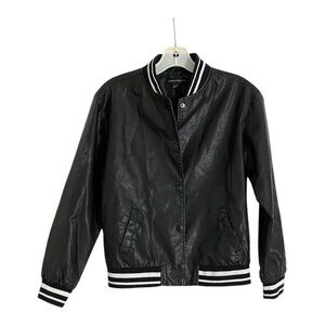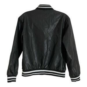 Slate & Willow Varsity Bomber Jacket in Black Faux Leather Size Small