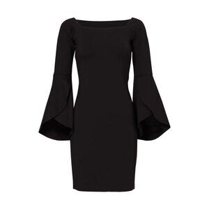 Slate & Willow Womens Black Janis Dress 6 Bell Sleeve Square Neck Cocktail Dress