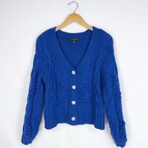 Slate & Willow Women's Bobble Chunky Knit Cardigan Sweater Small Blue