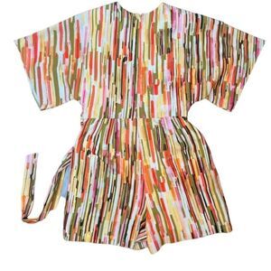 Slate & Willow Women's Striped Elliott Romper Orange Black Green Gold Size Small