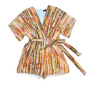 Slate & Willow Women's Striped Elliott Romper Orange Black Green Gold Size XS