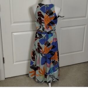 Slate & Willow green floral midi dress sleeveless size 0 blue orange maroon