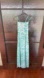 Stylish aqua and white zebra print maxi dress. Features a halter neckline and side slit. Perfect for summer occasions.