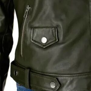 Slate & Willow Olive Moss Green Leather Moto Jacket