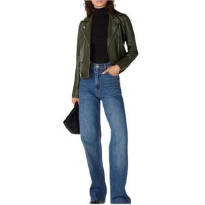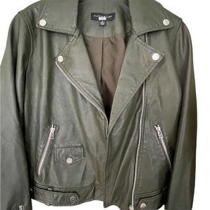 Slate & Willow Olive Moss Green Leather Moto Jacket - Medium / M