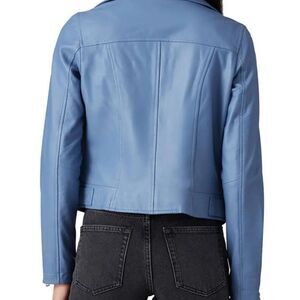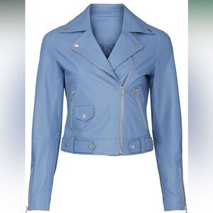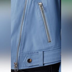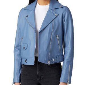 Slate & Willow Womens Blue 100% leather Biker Moto Jacket Coat Size XS