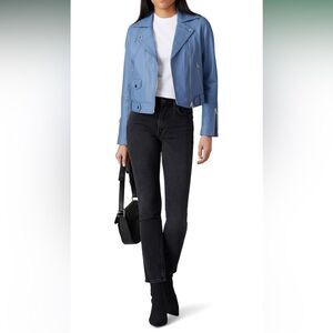 A colorful take on the classic moto jacket, this powder blue Slate & Willow style is ready to refresh your outerwear wardrobe.