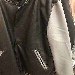 Slate and Stone Black and Gray Faux Leather Varsity Jacket