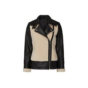 Slate and Willow Aviator Jacket Faux Sherpa Leather Trim Moto Beige Black Medium