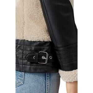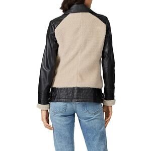 Slate & Willow Aviator Jacket Faux Sherpa Leather Trim Moto Beige Black Medium