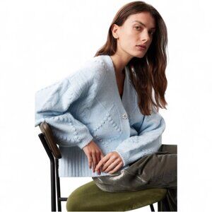 Slate and Willow Long Sleeve V-neck Light Blue Diamond Knit Cardigan | Size M