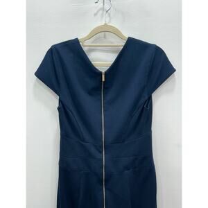 Slate and Willow Womens Sheath Dress Cap Sleeve Back Zip Career Navy Blue Size 6