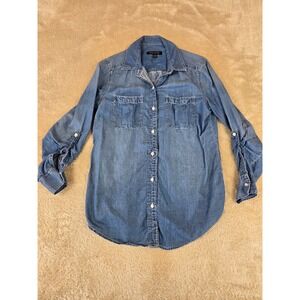 Slate blue Banana Republic short sleeve top.