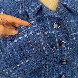 Elevate your style with this elegant blue tweed jacket. Perfect for any occasion, this jacket offers a sophisticated look with its rich blue tones. A must-have addition to your wardrobe. Excellent condition