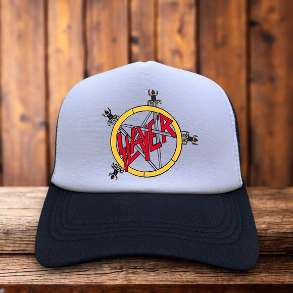 Slayer Mens Trucker Hat Black Snapback 1991 Thrash Metal Retro Baseball Cap