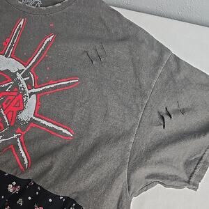 New, Boutique Handmade Slayer Metal Band Tshirt with Corduroy Floral Bottom, XXXL