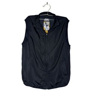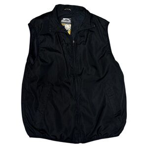 Stylish black vest by Slazenger. Features a zip-up front and sleeveless design. Perfect for layering. pre owned in good condition