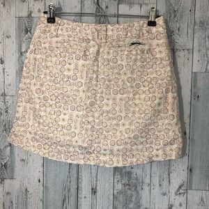 Red, black, green and gray circles, belt loops, 5 pockets,back pockets with buttons, zipper and button closure, logo back upper right side,colors may vary due to lighting, good used condition, Size: 2