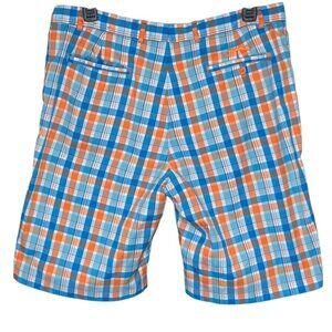Slazenger Men's 38 Orange Blue Vibrant Plaid Check Golf Flat Front Shorts
