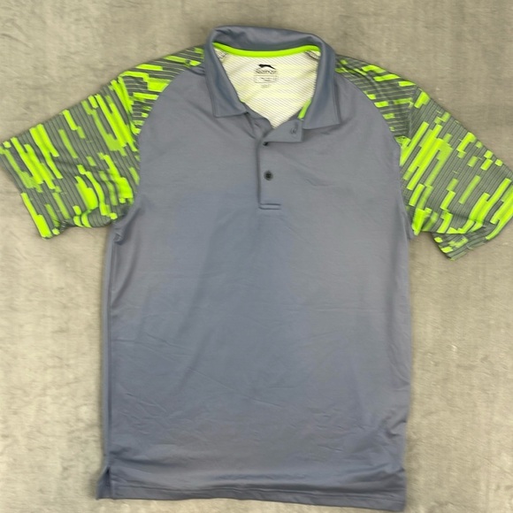 Slazenger Polo Golf Shirt Mens Blue/Gray/green Stripe Short Sleeve Sz Small