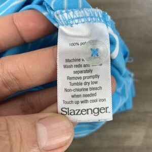 Slazenger Polo Shirt Mens Large Blue White Striped Golf Short Sleeve Stretch