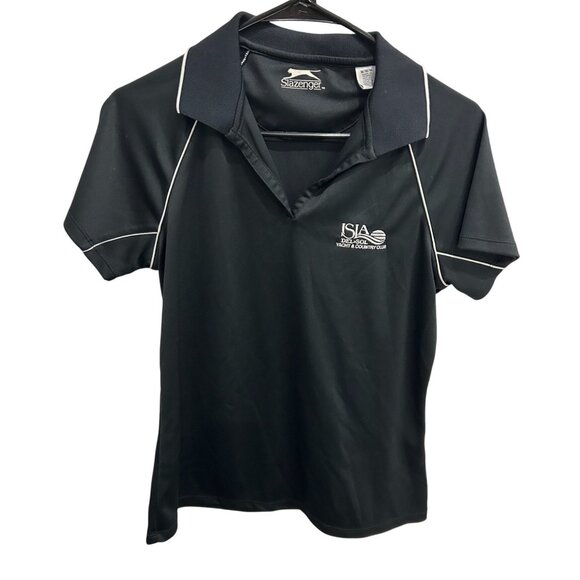 Slazenger Womens Black Polo Top Isla Del Sol Yacht Country Club Logo Sz Medium
