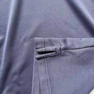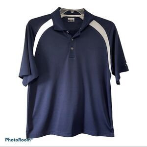 Features: Navy with white accent. Collared polo/golf shirt. Excellent used condition. No stains, tears or snags.