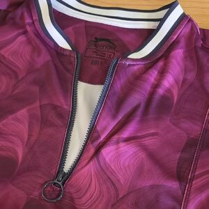 Stylish Slazenger golf pullover in a rich purple shade. Features a quarter zip-up front and a comfortable fit.
