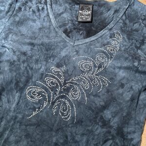 Sledge USA Shirt Womens XL Gray Tie Dye Embellished V Neck Ladies Top H1