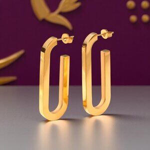 ๐ Sleek 18K Gold Plated Stainless Steel Modern U-Shape Statement Earrings