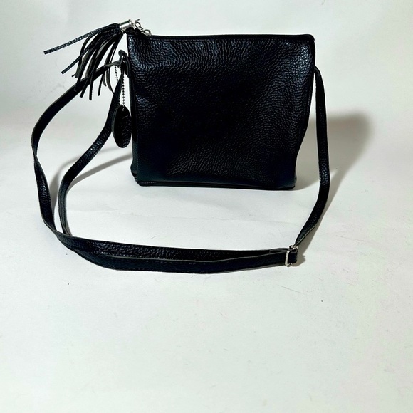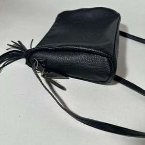 Sleek Black Crossbody Bag with Adjustable Strap and Tassel