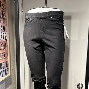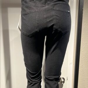 These black jeggings feature a sleek, form-fitting design that hugs the body from hip to ankle. Made from a stretchy material, they ensure comfort without compromising on style. The matte black finish adds a touch of elegance, making them a versatile wardrobe staple.