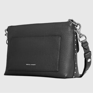 Sleek Black Leather Crossbody Bag with Silver Hardware