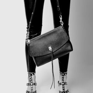 This black crossbody bag features a luxurious leather finish with a pebbled texture, offering both style and durability. Its rectangular shape and silver-toned hardware add a touch of elegance, making it a versatile accessory for any occasion. The long strap allows for comfortable wear, ensuring practicality without compromising on fashion.
