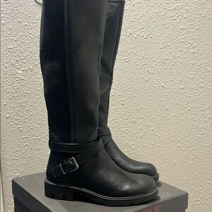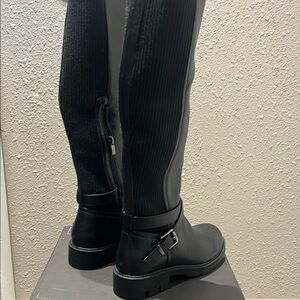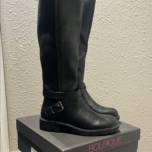 These elegant black over the knee boots boast a smooth leather finish and a form-fitting silhouette. Designed with a sturdy sole and rounded toe, they offer both style and comfort for any occasion. The tall, straight shaft adds a touch of sophistication to your ensemble.