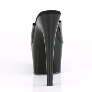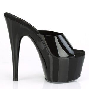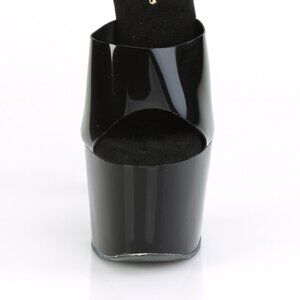 Make a captivating statement with these sleek jelly-like black platform mules, designed for those who demand attention. These striking high heel slides are the perfect choice for performers, glamorous events, or adding a touch of bold sophistication to any ensemble. Featuring a dramatic 7” heel and a comfortable 2 3/4” platform, they deliver impressive height with unwavering stability. Elevate your presence and embrace your confident stride with these essential black platform heels, high heel mules, and statement black shoes. Perfect for dance, stage, or a memorable night out!