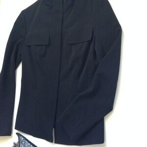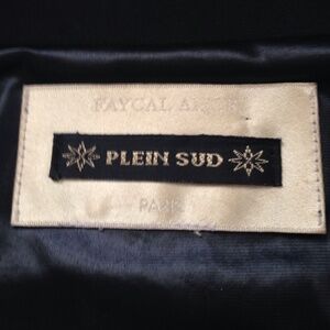 By Euro-Fashion House Plein Sud. One of my favorite lines. This is a killer jacket. High neck, with Velcro closure. 2 breast pockets and 2 side pockets. Button front. Fully lined. Side tag removed for comfort. Size 38 Fr. Size 4 or a slim, tall size 6. Please Google Plein Sud or check Style.com form more info on these great collections!