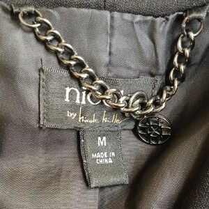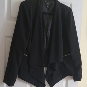 This black blazer features a sophisticated shawl collar and a relaxed fit, making it a versatile piece for any wardrobe. Its open-front design adds a modern touch, perfect for both formal and casual occasions. The slightly textured fabric enhances its elegant appearance.