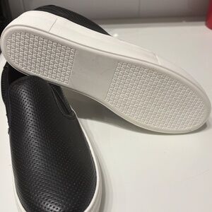 Step into effortless style with these chic black slip-on sneakers featuring a soft perforated faux leather upper and a crisp white platform sole. Designed for all-day comfort and easy wear with stretch side panels. Perfect for casual days, travel, or a polished street-style look.