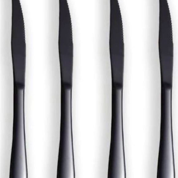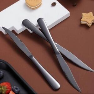 Set of sleek black steak knives. Perfect for any dining occasion. Black Steak Knife Set, Kyrtaon Black Serrated Knife, Titanium Black Plating Stainless Steel Sharp Knives Set, Dinner Knifes Set of 4, Dishwasher Safe Sturdy And Easy To Clean